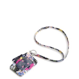 Vera Bradley - Zip ID Pouch w/Breakaway Lanyard -Wildflower Sprigs-Premium Cotton