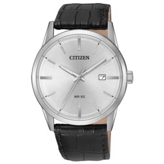 Citizen Watch - Mens Quartz Watch SS Case w/ Blk Leather Strap