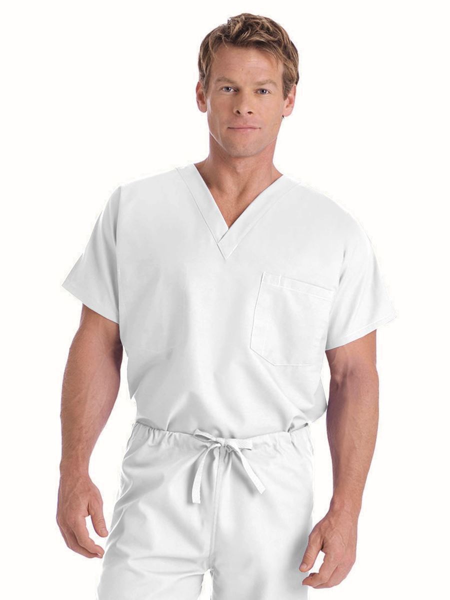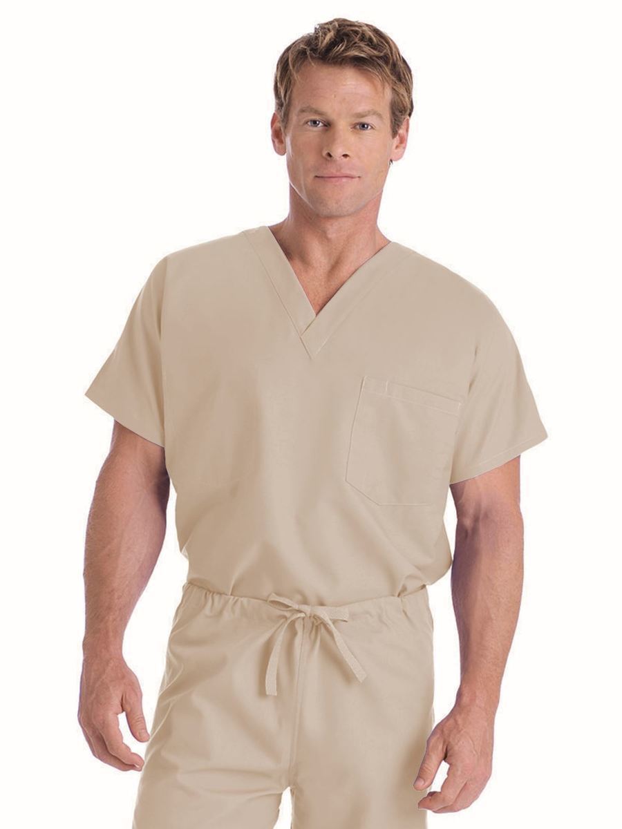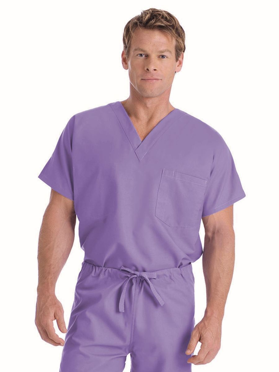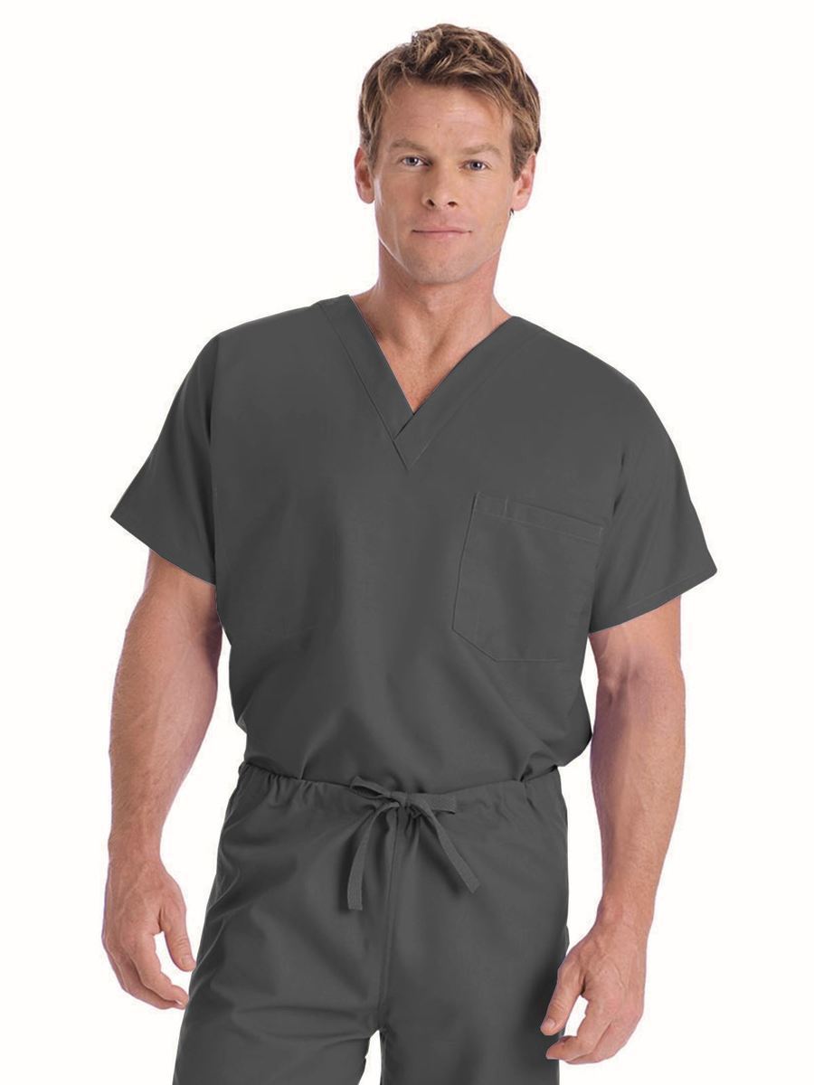 Reversible v-neck top with reinforced neck facing, dolman sleeves and breast pocket on both sides. Center back length: 27½". Tall center back length: 30".