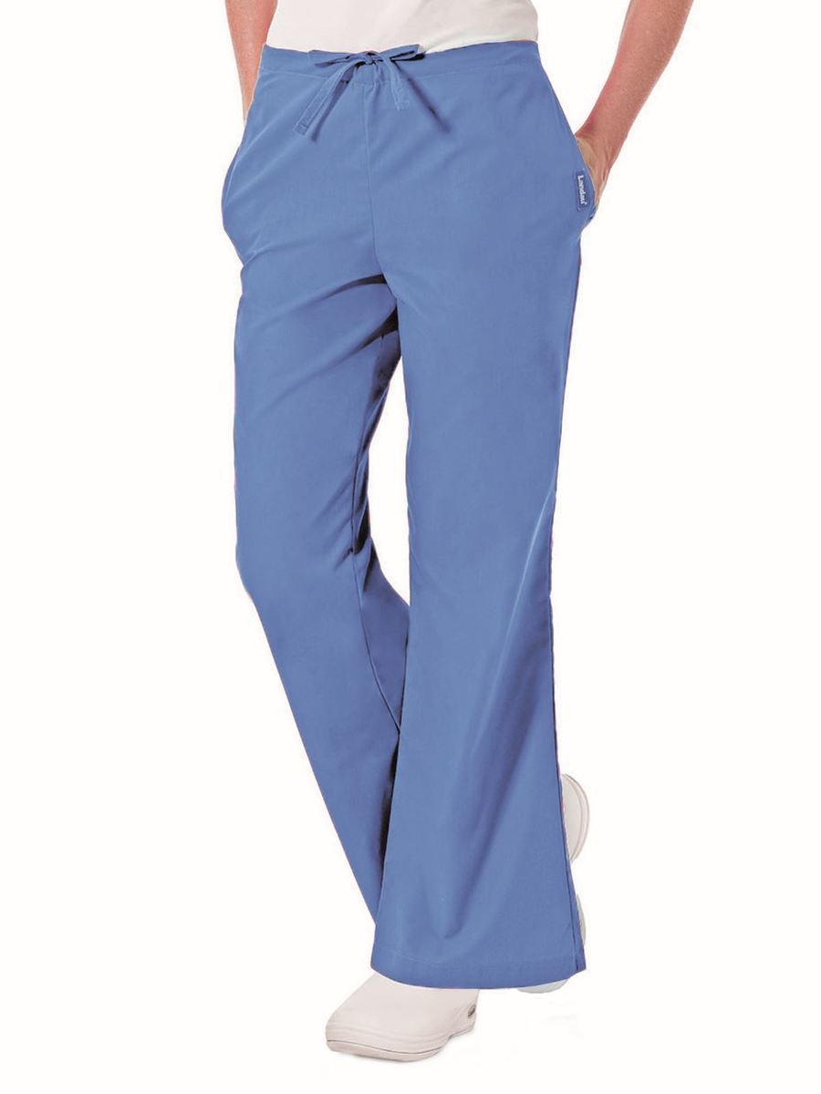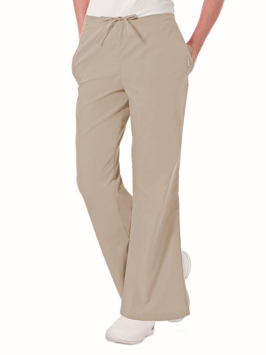 Women's natural flare leg pant with combination elastic back, drawstring front, and side pockets. Regular inseam: 31". Petite inseam: 28½". Tall inseam: 33".