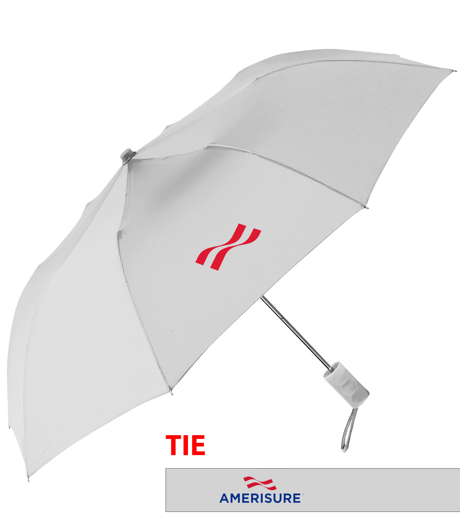 This Revolution umbrella features our brand on the closure strap and the Amerisure flag on one panel.  42″ Arc, automatic opening and machine tips. Made of nylon on a wind reflex frame for durability in wet and windy weather conditions. Should the frame get caught inside out, a good shake will get it back in shape without causing any damage. Each umbrella is enhanced with a matching color rubber spray handle and matching nylon sleeve so it can be taken on the go or stored away safely in a closet.