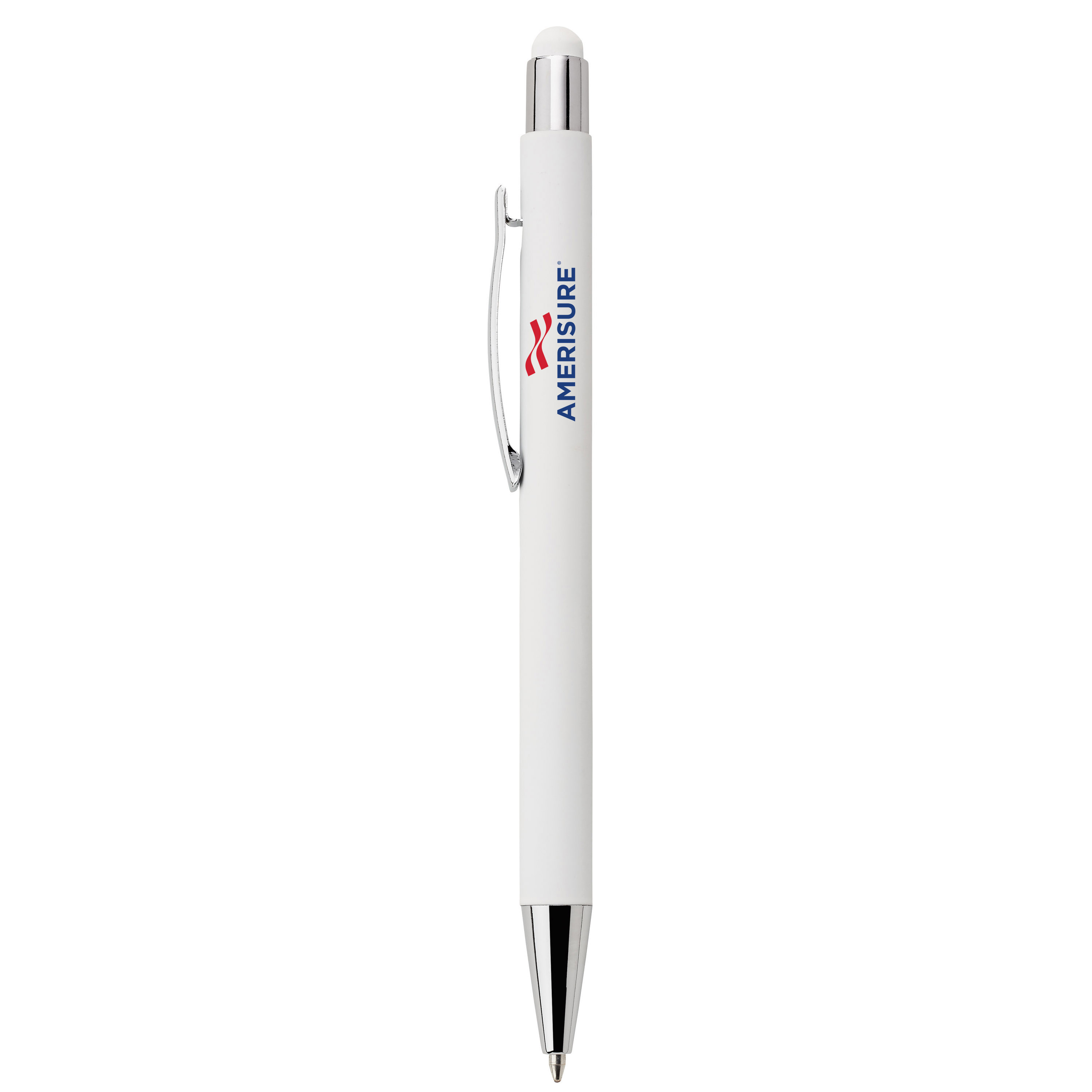 Rubberized aluminum barrel provides a comfortable grip for this sleek pen. Features rubber stylus. Bulk packaged.