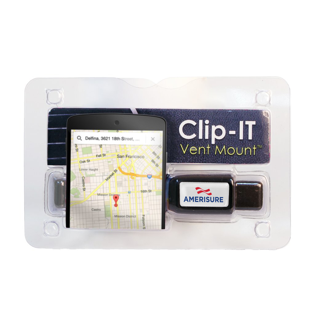 View your phone clipped to your vent mount.  The Clip-IT Vent Mount allows hands free visibility while driving. Secure vent clip to desired vent, clip ball in socket joint and insert phone into adjustable padded slot. Articulating ball in socket allows landscape or portrait viewing.
