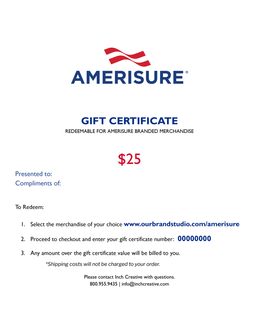 A gift certificate for merchandise, with $12.50 prepaid freight cost included at purchase.
