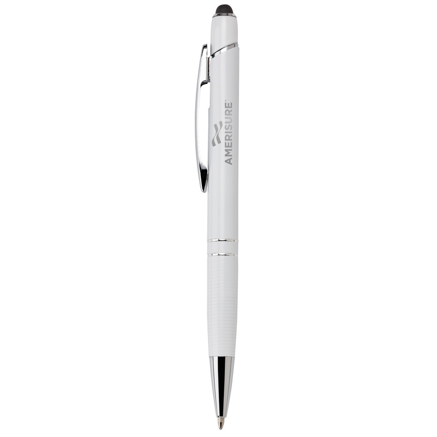 You'll quickly get used to taking the Glacio around with you everywhere, simply for its versatility. This is a reliable push-action heavyweight aluminum pen that leaves plenty of room for displaying our brand. With a long-lasting SureWrite™ refill, this pen will be hanging around for a good while. Going more digital? That's fine too: flip it and use the capacitive stylus on the other end. How's that for versatile! Bulk shipped.