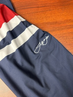 This item features our Amerisure brand on the collar and Joe Hooks' signature on the sleeve.