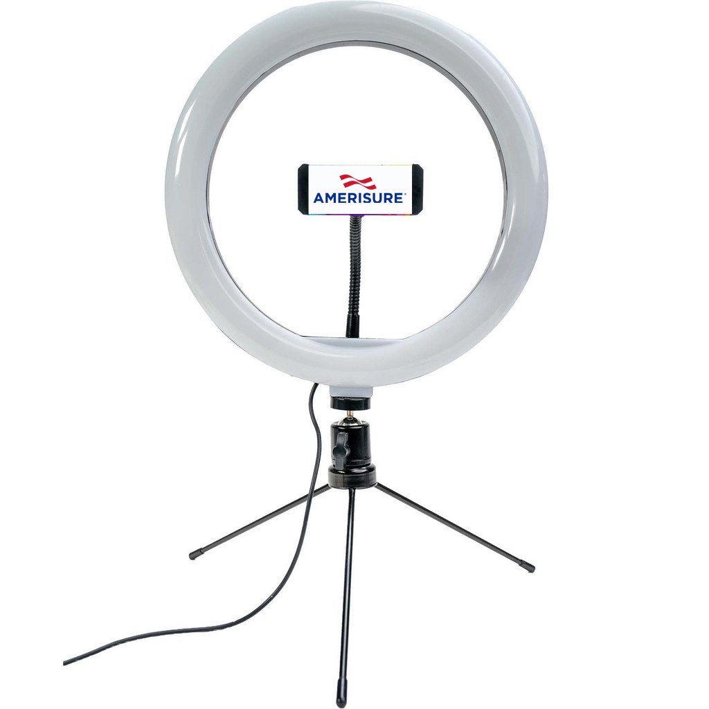 Lights, camera, action! The McLighty is a ring light and cell phone holder in one, a must-have for any office space. You'll be fully illuminated by this 10 inch LED light on all your video calls and with a warm, cool, or neutral light option you'll look your best no matter the lighting situation. It's compact and portable so if you're taking virtual meetings on the go, this light is ready to come along for the ride. Light is 10.5" tall when not mounted to the stand & 16.5" tall when mounted. Features our brand.