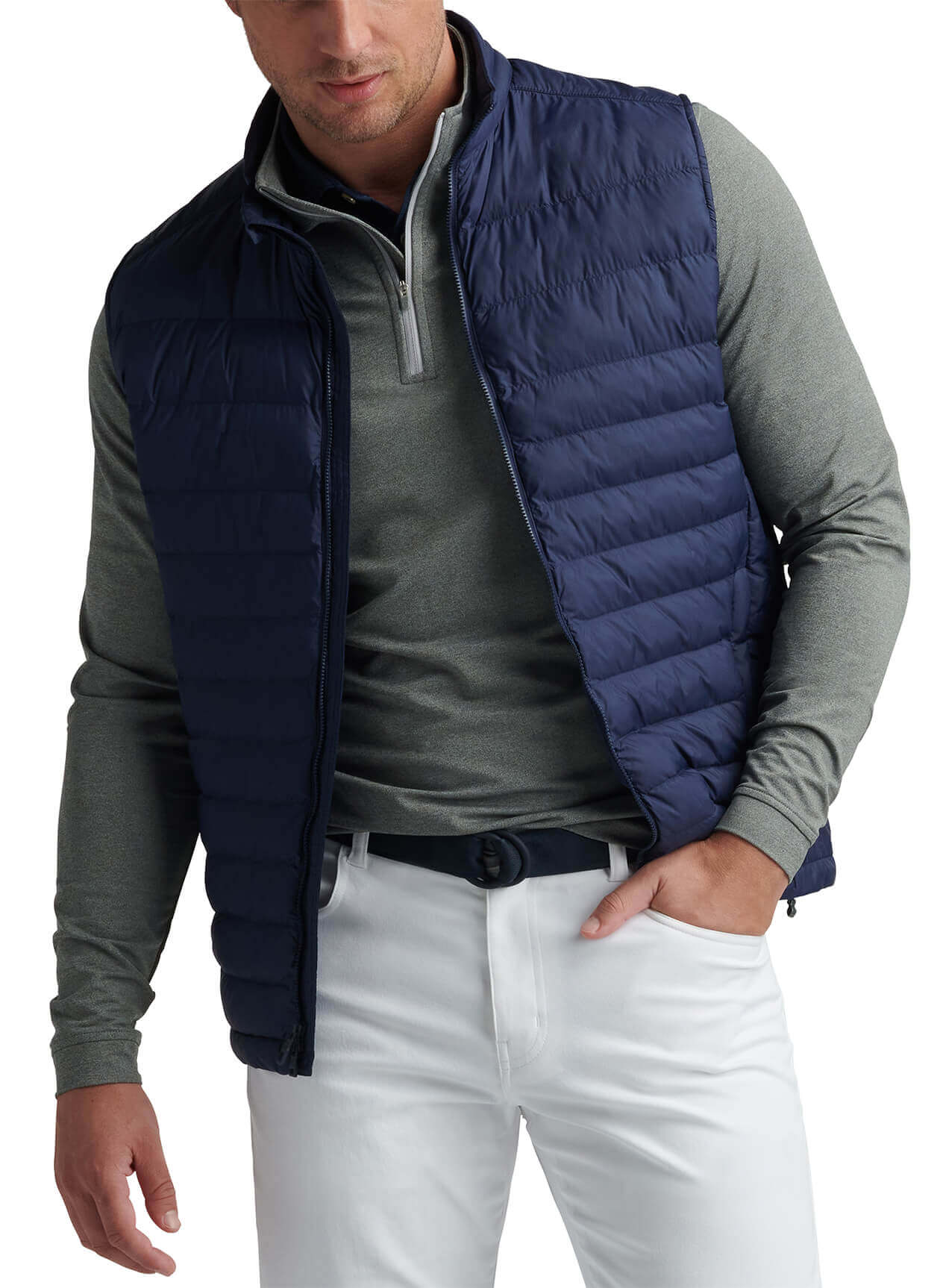 An essential performance layer designed with loose fill channel insulation, the All Course Vest offers warmth without weighing you down as well as water-resistant protection on the exterior. It's finished with a rubber Crown patch on the right shoulder and two side-zip pockets.