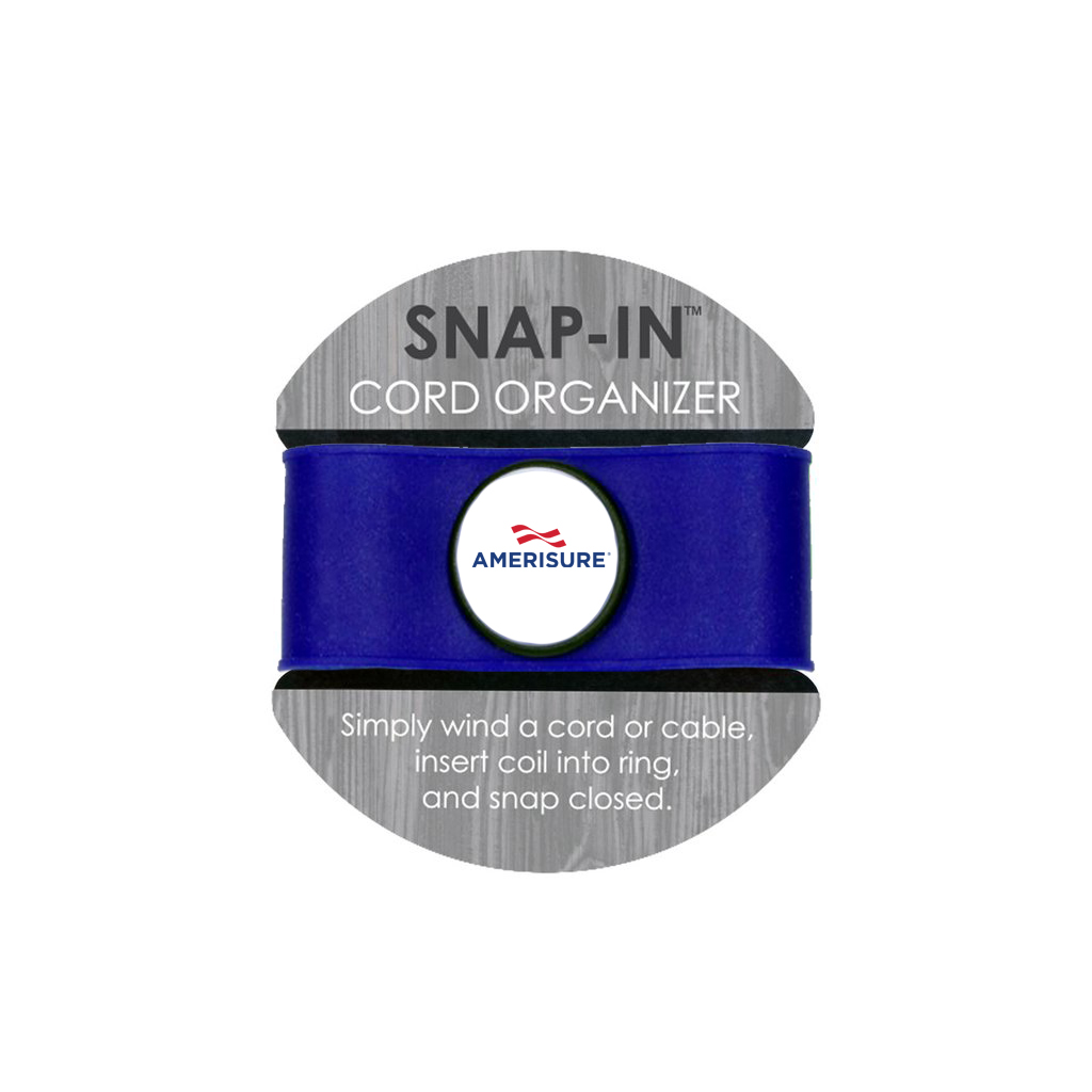 A tangle free world! The SNAP-IN is the most user-friendly cord management tool on the market today. Simply wind your cord into a coil, insert into the ring, snap closed and no longer worry about knotted cords. Easy cord management Brilliant full-color Fireglaze™ imprint High-grade silicone material provides strength and durability 2 1/8" diameter x 7/8' D