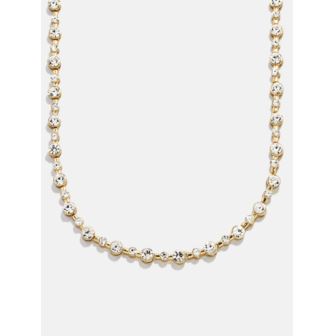 Your new everyday chain. A fresh take on our best-selling Amalie Tennis Necklace, this chain is a must-have for those who crave a more subtle sparkle. Alternating multi-sized round crystals in a sleek bezel setting. Secure fold-over clasp to keep your necklace in place. Lightweight and easy to wear all day long. Wear it solo for a sleek finish, or mix with other chains when you're in the mood for a layered look. Materials: Glass stones. Gold plated brass. Closure: Fold Over. Allergy Information: Hypoallergenic. Measurements: Length: 15"