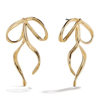 We turned the classic bow into a modern statement. Oversized and sculptural, this pair brings confident charm to any outfit. Playful statement bow earrings. Sculptural detailing for a bold, dimensional effect. Glossy gold material pairs well with almost anything. Oversized design makes these an effortless statement. Wear them with sharp tailoring or soft knits-these bows hold their own.