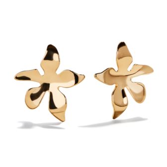 Add instant sweetness to your lobes with these brightly polished stud earrings shaped into free-form blooms. Surgical steel post back. Gold-tone plated brass.
