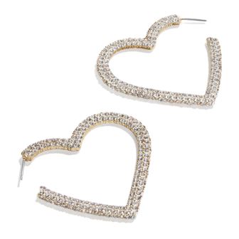 Switch out your everyday hoops for a little extra love. The Emory Earrings are heart outline earrings that bring the personality with their sweet yet subtle shape. These earrings are perfect for whenever you want to wear your heart on your ears. Materials: Glass stones, Gold plated brass. Surgical steel post. Closure: Post Back. Allergy Information: Hypoallergenic Measurements: Length: 1.37". Width: 1.26“. Weight: 0.38 oz.