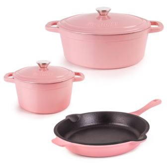 BergHOFF - Neo 5pc Cast Iron Dutch Oven Set with 10" Fry Pan, 3qt. & 5qt., Pink