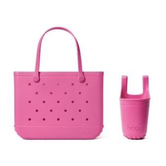 The perfect everyday bundle! Including the bag that started it all, washable, indestructible, and built to carry it all. The Original Bogg Bag is our largest, most spacious tote, perfect for beach days, big hauls, and everyday family adventures. Durable and tip-proof, it stands upright, wipes clean, and keeps up with whatever your day throws at it. Includes two clear insert bags, perfect for organizing smaller essentials like your phone, sunscreen, keys, or snacks. Bag Dimensions: 19" L × 9" W × 14" H. Weight: 3 lbs. Our largest haul-it-all bag, fits 6 towels and every Bogg accessory. Pair it with the included drink holder. Crowd favorite. Fits every Bogg. Meet the Bogg Bevy-your go-to drink and essentials holder. This clip-on accessory slides easily onto the top edge of any Bogg-no extra parts needed. It holds most 12–16 oz cups, cans, and small water bottles. Use it to stash your phone, keys, snacks, or even seashells. Dimensions: 4" L × 3.5" W × 5.25" H (8.25" with hooks) Weight: 3.6 oz Material: EVA Plastic.