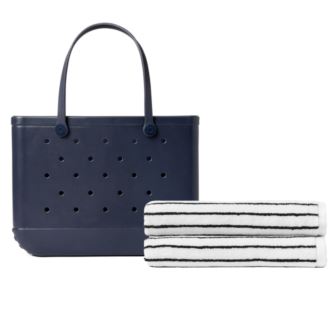 The ultimate accessory duo for a day by the sea, poolside adventure or spa session. Including the bag that started it all, washable, indestructible, and built to carry it all. The Original Bogg Bag is our largest, most spacious tote, perfect for beach days, big hauls, and everyday family adventures. Durable and tip-proof, it stands upright, wipes clean, and keeps up with whatever your day throws at it. Includes two clear insert bags, perfect for organizing smaller essentials like your phone, sunscreen, keys, or snacks. Bag Dimensions: 19" L × 9" W × 14" H. Weight: 3 lbs. Our largest haul-it-all bag, fits 6 towels and every Bogg accessory. Pair it with Cozy Earth's Luxe Bath Towel 2pc Set. Indulge in everyday luxury. Crafted from 60% Turkish cotton and 40% bamboo viscose, they are ultra-soft, absorbent, and fast-drying. Zero Twist technology enhances plushness, making them a must-have for your routine. Dimensions: 30" x 58".