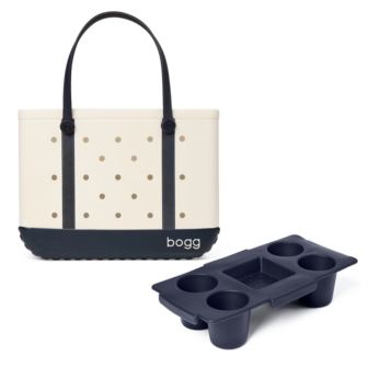 The perfect bundle for any day out! Including the bag that started it all, washable, indestructible, and built to carry it all. The Original Bogg Bag is our largest, most spacious tote, perfect for beach days, big hauls, and everyday family adventures. Durable and tip-proof, it stands upright, wipes clean, and keeps up with whatever your day throws at it. Includes two clear insert bags, perfect for organizing smaller essentials like your phone, sunscreen, keys, or snacks. Bag Dimensions: 19" L × 9" W × 14" H. Weight: 3 lbs. Our largest, haul-it-all bag, fits 6 towels and every Bogg accessory. Pair it with the included Top O' The Bogg To Ya topper. From tote to tabletop-turn your Original Bogg into the ultimate snack or drink station. The perfect accessory for picnics, beach days, tailgates, camping trips, and al fresco happy hours. Made from lightweight, durable EVA, it features four built-in cup holders and a tray-within-a-tray design to keep snacks, bowls, and small plates secure. It's also easy to clean-just rinse or wipe it down after use. Compatible with the Original Bogg Bag only. Dimensions: 19" L × 9" W × 4" H Weight: 1 lb. 5 oz.