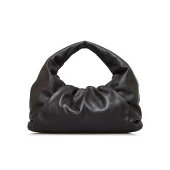 Made of calf leather, this black shoulder pouch from Bottega Veneta features a magnetic closure, top handle and one internal compartment. Single compartment lined in calf leather. Dimensions: 15.7" L x 6.7" H x 7.1" W. Handle Drop: 8.3"