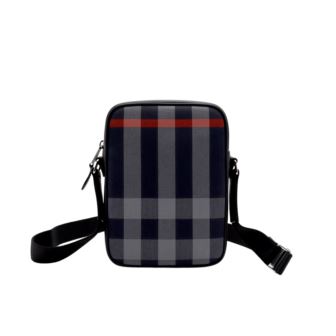 This signature check camera bag features top zipper closure and a canvas carrying strap. Bag interior contains a convenient card holder pocket for your valuables. This bag is the perfect way to look stylish carrying your camera or phone from day into night. Dimensions 7" L x 2.75" W x 9.5" H.