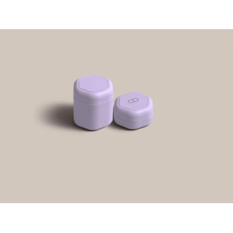 This set features one Medium Capsule (1.32 fl oz) with a blank label and one Small Capsule (0.56 fl oz) with a pill icon. Color: Lavender. TSA-approved.