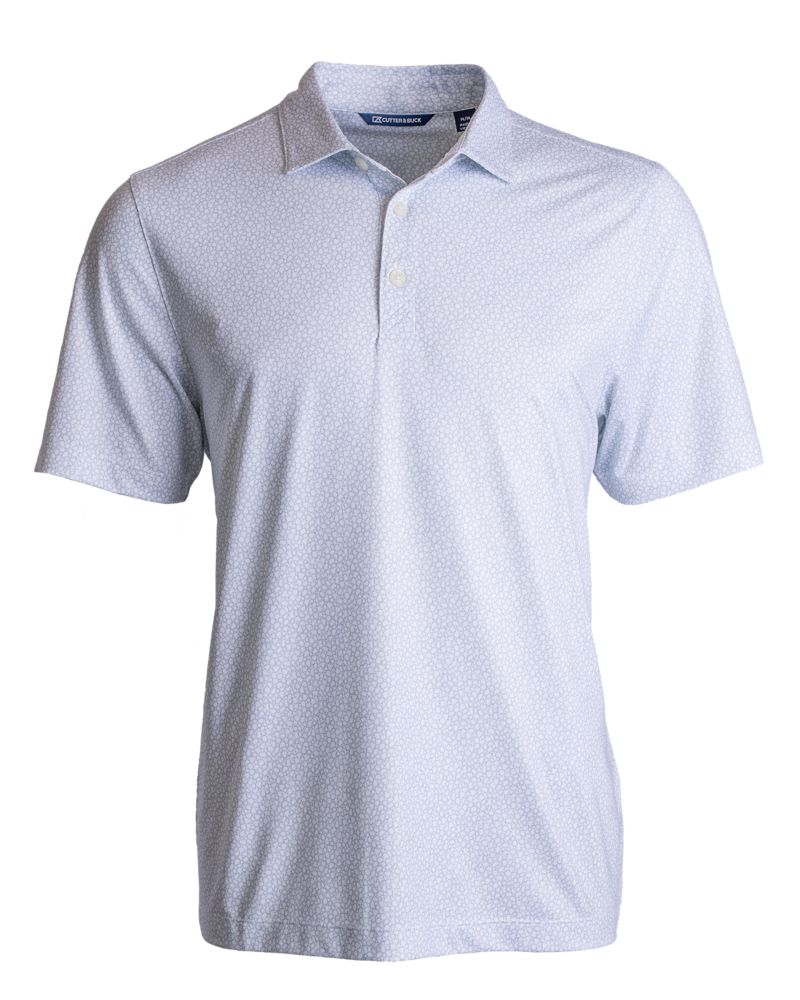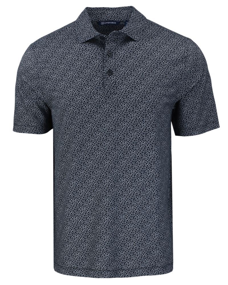 The iconic short sleeve Cutter & Buck Pike Recycled Pebble Print Mens Polo is engineered with 4-way stretch for exceptional versatility, designed to be your favorite sustainable super smooth men's short sleeve polo shirt for golf, the clubhouse, the office, travel, work from home, or wherever adventure takes you. Supremely stretchy with a sophisticated and sporty look, the moisture wicking, high quality Pike Eco Pebble Print polo is a perfect blend of UPF sun protection certified eco-friendly polyester and spandex, resulting in the most versatile, sustainable and comfortable polo for you and the planet. - 94% Recycled Polyester, 6% Spandex Fine Gauge Jersey - Material made from GRS Certified post-consumer recycled polyester - UPF 50+ UV Sun Protection - Moisture Wicking - CB Logo trims - Recycled content certified by Global Recycled Standard - Machine Wash - Imported