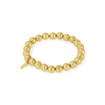 Dean Davidson's Signature Beaded Bracelet is perfect for stacking or wearing solo. With 8mm beads hand-strung on a clear elastic cord, the bracelet is one-size-fits-most. All of Dean Davidson's gold pieces are cast out of the highest quality brass and then plated in 22KT gold. His unique signature brushed finish give a luxurious quality to his designs.