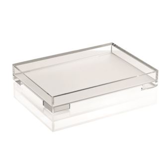 The Guzzini Essence L Tray is a refined serving essential with a minimalist design and practical features. Measuring 1.97"" x 18.11"" x 12.60"", this tray includes raised edges for secure carrying and an easy-grip shape for safe serving. Made from crystal-clear BPA-free plastic with a scratch-resistant satin-finish base, it offers durability with sleek elegance. Designed by Setsu & Shinobu Ito, the tray is also stackable for space-saving storage. Whether used for serving beverages, snacks, or decoratively, it combines visual appeal with long-lasting functionality, making it perfect for both casual and formal occasions. A versatile and timeless piece for any home.