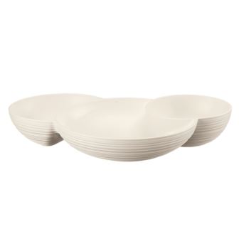 Serve up sustainability and style with the Tierra Hors dOeuvres Dish, thoughtfully made in Italy from 100% post-consumer recycled plastic. Measuring 2.05" x 11.61" x 8.43", this dish features three generously sized compartments to hold a variety of snacks-like olives, peanuts, vegetable sticks, or cheese cubes. Its fluid, curvy design adds a modern touch to casual get-togethers and formal spreads alike. Lightweight, impact-resistant, and dishwasher-safe, it offers beauty and function with minimal maintenance. Whether used for hosting, picnics, or everyday snacking, this tray adds both convenience and visual appeal. Crafted with an eco-conscious mindset, it proves that functional serveware can be both planet-friendly and beautiful.