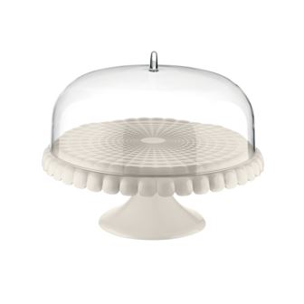Cake stand with dome, featuring a smooth base and dome and a dish with the distinctive Tiffany relief chequered pattern. Dimensions: 11.02" x 14.17" x 14.17"