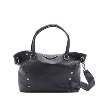 Get down to business with this updated take on our classic Daniel satchel. Crafted with additional rivets, a double zippered pocket, three interior drop pockets and reinforced hardware, the revamped Daniel is ready to take on your busy calendar. Ready to set a meeting? Crafted with classic black leather. Red embossed suede lining. Gunmetal hardware, guaranteed for life. Exterior cell phone pocket, interior credit card slot. Top handles and removable, adjustable crossbody strap. 18" x 4.5" x 11". Short Straps: 1"W x 8" Drop. Crossbody Strap: 1.75"W x 14-21.5" Drop