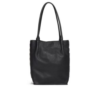 This slim take on the lightweight Oliver tote makes one easy carry-all, complete with a cell phone pocket and top snap closure. Crafted with classic black leather. Red logo twill lining. Gunmetal hardware, guaranteed for life. Back cell phone pocket. Interior credit card slot and snap top closure. 10"L x 5"W x 13"H, 10.5" strap drop
