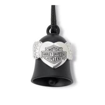 In the spirit of tradition and for the rider who lives the legend, ring out freedom of the open road with a guardian ride bell. This bike accessory features an H-D silver plated heart with wings on a matte black bell.