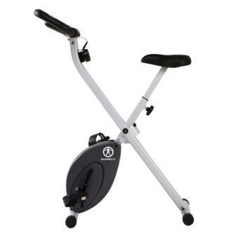 The Marcy fold-able upright bike NS652 features Magnetic resistance for smooth pedalingPadded seat and handle bar for maximum comfort. Folds for space saving storage. Easy to use electronics includes time, distance, calories and speed. Rated up to 250 lbs. 45.25" H x 18.25" W x 32", 35 lbs45" H x 18.25" W x 20" L" - Folded.