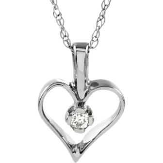 Elevate your elegance with our 14K White Gold Diamond Heart Necklace. This refined piece features a delicate heart pendant adorned with 0.03 CTW of sparkling diamonds, suspended from an 18-inch white gold chain with a secure spring ring closure. Add a touch of timeless charm and sophistication to your collection with this exquisite necklace.