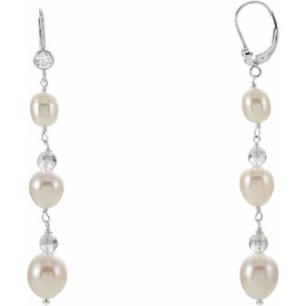 Elevate your style with our Sterling Silver Freshwater Pearl & Crystal Earrings. These sophisticated earrings combine the timeless allure of freshwater pearls with the sparkling elegance of crystals, making them a refined addition to your collection, perfect for any occasion. Sterling Silver Freshwater Pearl & Crystal Earrings.