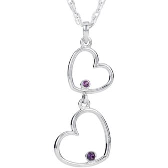 Sterling Silver Amethyst Double Heart 18" Necklace -A stylish and thoughtful design, this pendant celebrates your romantic love story. Featuring round purple Genuine Amethyst, these .925 Sterling Silver Double Hearts grace an 18-inch chain.