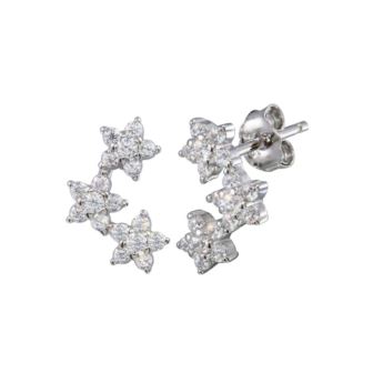 Elevate your style with our Rhodium Plated 3 Flower CZ Stud Earrings in 925 Sterling Silver. Each enchanting flower boasts a dazzling center stone, while its delicate five petals shimmer with CZ stones, adding a touch of nature's beauty to your everyday elegance. Rhodium Plated 3 Flower CZ Stud Earrings in 925 Sterling Silver.
