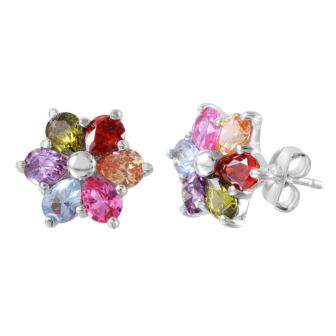Elevate your style with these Multi Color CZ Flower Stud Earrings, delicately designed in 925 Sterling Silver. These charming studs beautifully showcase an array of vivid cubic zirconia, creating a refined accessory that embodies sophistication and the vibrant allure of a blossoming flower. Multi Color CZ Flower Stud Earrings in 925 Sterling Silver.