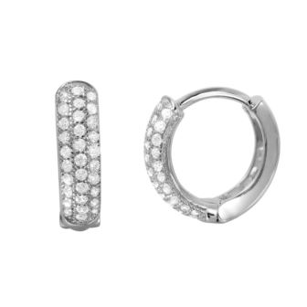 Radiate grace and sophistication with these Rhodium Plated CZ Huggie Hoop Earrings, delicately designed in 925 Sterling Silver. These charming Huggie hoops capture the brilliance of cubic zirconia, creating a refined accessory that embodies sophistication and a touch of sparkle, making them the perfect addition to any ensemble for a hint of charm and grace. Rhodium Plated CZ Huggie Hoop Earrings in 925 Sterling Silver