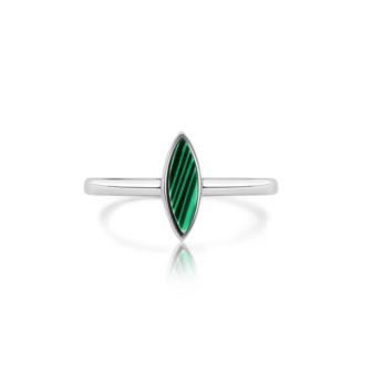 Green Accent Stone Cat's Eye Ring in Rhodium Plating over 925 Sterling Silver Size-6