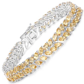 Emanate warmth and refinement with this 12.32 Carat Citrine Bracelet, elegantly set in 18K White Gold over Sterling Silver. Measuring 7.00 inches in length, it captures the golden radiance of citrine, creating an exquisite and timeless accessory that exudes natural beauty and sophistication. 12.32 Carat Citrine Bracelet in 18K White Gold over Sterling Silver -7.00"