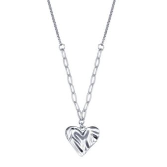 Creased Heart Necklace in Rhodium Plating over 925 Sterling Silver