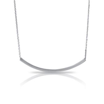 Exude timeless elegance with this Rhodium Plated Curve Bar Necklace, exquisitely designed in 925 Sterling Silver, measuring 40mm in length. This necklace beautifully blends the brilliance of rhodium with the sleek and sophisticated curve bar design, creating a refined accessory that radiates understated luxury and graceful allure, making it the perfect complement to any ensemble. Rhodium Plated Curve Bar Necklace in 925 Sterling Silver-40mm.