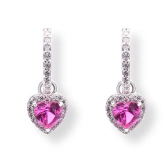 Dangling Micro Pave Heart Red and Clear CZ Huggie Earrings in Rhodium Plating over 925 Sterling Silver