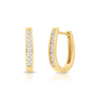 Indulge in the timeless elegance of these exquisite Diamond Hoop Earrings, crafted in lustrous 10K Yellow Gold. Each delicate hoop is adorned with a mesmerizing array of sparkling diamonds, totaling 0.18 carats. Their enchanting hue, nestled within the warm embrace of yellow gold, radiates a soft, romantic glow. As you hold them in your hands, imagine the moments they'll accompany you through - from candlelit dinners to moonlit strolls, each memory illuminated by their radiant sparkle. With a color grade of IJ and clarity of I2, these diamonds possess a natural allure, each imperfection adding to their unique character. Adorn yourself or surprise a loved one with these enchanting earrings, a symbol of enduring love and affection. Let them serve as a reminder of the cherished moments shared and the ones yet to come, encapsulating the essence of romance in every gleaming facet.