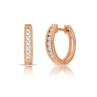Embark on a journey of timeless romance with these enchanting Diamond Hoop Earrings, delicately crafted in elegant 10K Rose Gold. Adorned with a mesmerizing array of shimmering diamonds totaling 0.15 carats, they are a symbol of delicate grace and everlasting love. Imagine the soft, romantic glow emanating from these hoops as they delicately adorn your ears. Each diamond, with its captivating color grade of IJ and clarity of I2, reflects the purity and depth of your affection, encapsulating every cherished moment shared. Let these earrings be a reminder of the enchanting bond you share, a promise of endless love and devotion. Whether worn for a glamorous soirée or an intimate rendezvous, they will always serve as a radiant token of your enduring commitment. Embrace the magic of romance with every gleaming facet of these exquisite earrings.