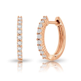 Envelop her in a timeless embrace with these Diamond Hoop Earrings in 10K Rose Gold. Crafted to capture the essence of eternal love, each delicate curve holds the sparkle of 0.20ct diamonds. In the gentle glow of rose gold, these earrings become a symbol of the affection and devotion you share. The diamonds, with their Color-IJ and Clarity-I2, twinkle like celestial treasures, reflecting the depth of your connection. As she wears these hoops, let them whisper tales of cherished moments and enduring commitment. With every glint, let her heart be reminded of the everlasting bond you cherish, knowing that these Diamond Hoop Earrings are a shimmering tribute to your timeless love.