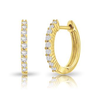 Envelop her in a timeless embrace with these Diamond Hoop Earrings in 10K Yellow Gold. Crafted to capture the essence of eternal love, each delicate curve holds the sparkle of 0.20ct diamonds. In the gentle glow of yellow gold, these earrings become a symbol of the affection and devotion you share. The diamonds, with their Color-IJ and Clarity-I2, twinkle like celestial treasures, reflecting the depth of your connection. As she wears these hoops, let them whisper tales of cherished moments and enduring commitment. With every glint, let her heart be reminded of the everlasting bond you cherish, knowing that these Diamond Hoop Earrings are a shimmering tribute to your timeless love.