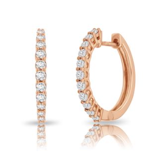 In a dance of eternal elegance, these Diamond Hoop Earrings in 10K Rose Gold intertwine the elements of love and luxury. Crafted to perfection, each hoop is a testament to the enduring bond you share, adorned with a captivating 0.50ct of diamonds. Picture her wearing these exquisite earrings, catching the light with every movement, illuminating her beauty with a soft, romantic glow. The warm embrace of 10K rose gold sets the stage for the diamonds to shine, their Color-IJ and Clarity-I2 adding character and depth to their brilliance. As she wears these earrings, let them serve as a reminder of your unwavering devotion. Each diamond whispers tales of cherished moments shared, while the rose gold symbolizes the warmth and tenderness of your affection. Gift her more than just jewelry; gift her a symbol of your enduring love. With these Diamond Hoop Earrings, let your romance sparkle for eternity.