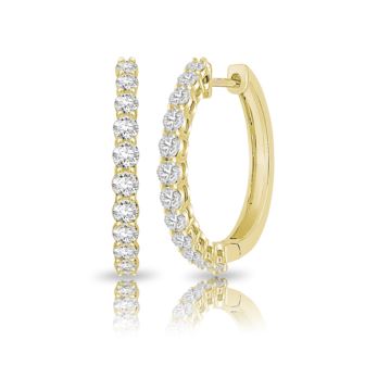 Envelop her in a luminous embrace of love with these captivating diamond hoop earrings, crafted in the warm embrace of 10K yellow gold. Each graceful curve of these hoops whispers tales of romance, weaving a story of everlasting devotion. With a dazzling display of diamonds totaling 1.00 carat, these earrings are a radiant reflection of your boundless affection. Set in the enchanting hues of IJ color and boasting the clarity of I2, each diamond captures the essence of your love, sparkling with every beat of her heart. As she wears these exquisite hoops, let them serve as a tangible reminder of the depth of your commitment, a promise of forever that shines as brightly as the diamonds themselves. Gift her not just jewelry, but a symbol of your enduring bond, destined to sparkle for a lifetime and beyond.